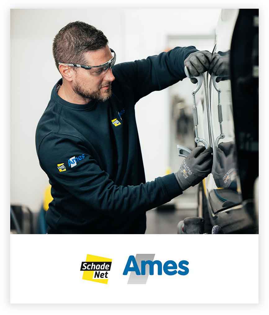 Ames Schadenet, Schadenet De Koning en Autoschade De Kade zijn drie universele schadebedrijven die allebei deel uitmaken van dealerholding Amega. Schadenet Ames is gevestigd op ons bedrijventerrein in Zwijndrecht en Schadenet De Koning is gevestigd in een gloednieuw pand in Alblasserdam. Autoschade De Kade is in mei 2025 toegevoegd aan dealerholding Amega en is gevestigd in Nuenen, vlakbij Eindhoven. Alle schadebedrijven richten zich op kwalitatief hoogstaand schadeherstel voor personenauto’s en lichte bedrijfswagens. Het bedrijf biedt een breed scala aan diensten, waaronder uitdeuken zonder spuiten, spotrepair en complete schadeafhandeling. Klanten profiteren van een snelle en efficiënte service, met aandacht voor duurzaamheid en gebruik van moderne reparatietechnieken.
